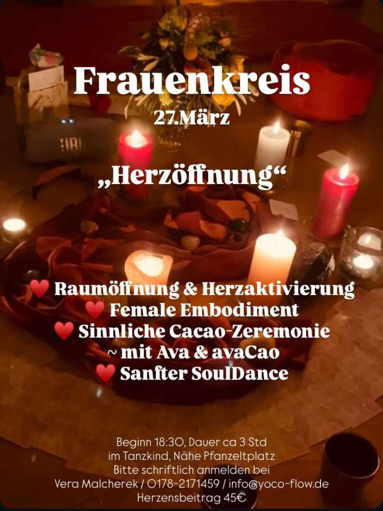 Wir kommen im Kreis zusammen, um einfach zu sein. Die Zeit im avaCao Frauenkreis wird Dich nähren und Dich an deine heilige, sinnlich weibliche Kraft erinnen.