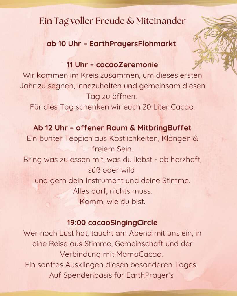 Eine ekstatische Tanzreise für Körper, Herz und Seele – getragen von Musik, Gemeinschaft und der spirituellen Kraft des Cacaos.